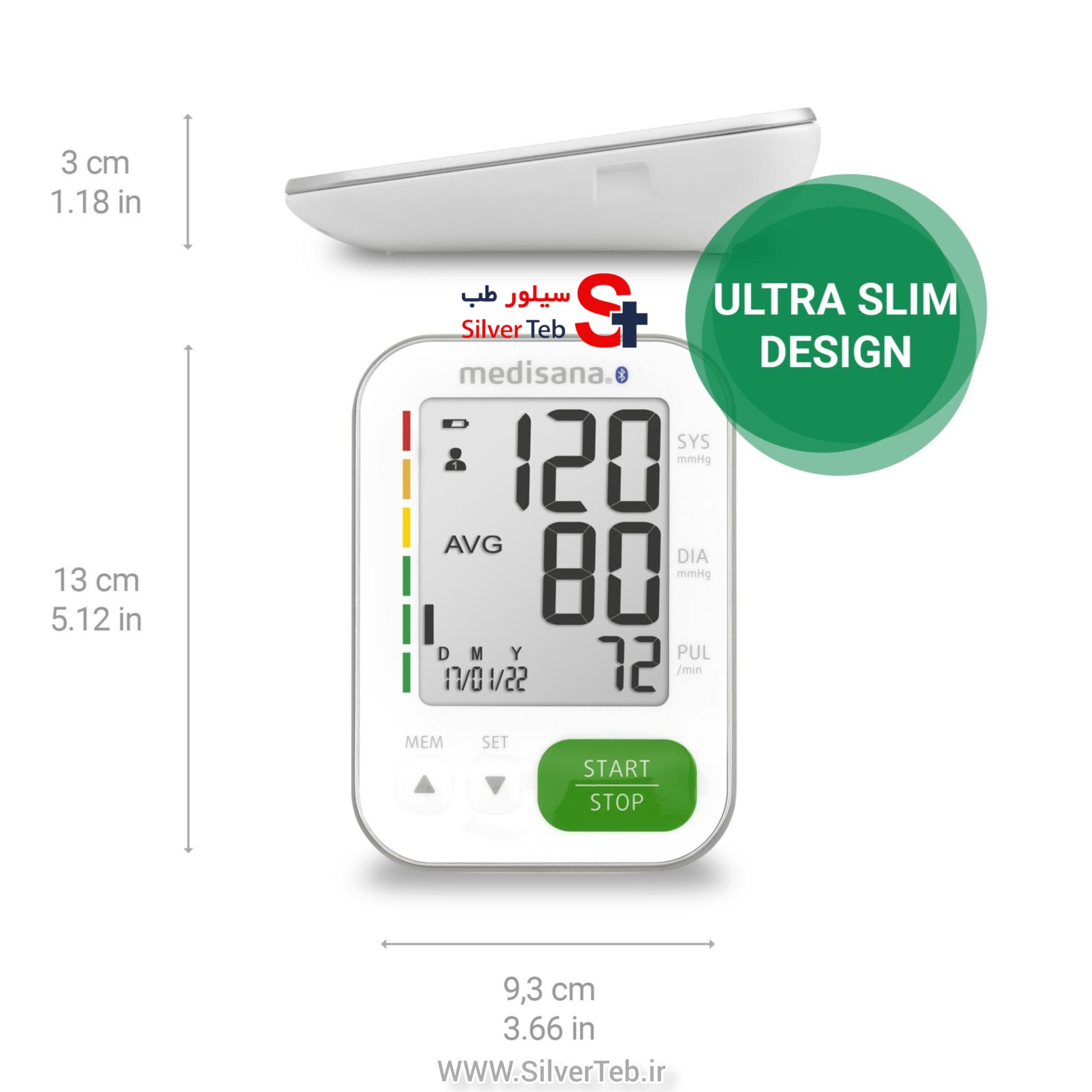 طراحی فوق العاده باریک در یک اندازه جیب عملی فشارسنج بالادستی BU 570 به لطف اندازه مناسب خود، نه تنها برای استفاده در خانه راحت است، بلکه یک همراه عملی برای هنگام حرکت نیز می باشد. به لطف پیشرفته ترین اجزای میکرو، طراحی به خصوص مسطح آن فقط به اندازه سه گوشی هوشمند روی هم است. صرفه جویی در فضا و جمع و جور، و همچنین مناسب برای حمل و نقل تقریبا در هر کیف دستی! با وجود اندازه جمع و جور، مقادیر اندازه گیری شده را می توان به راحتی و با دقت بر روی صفحه نمایش LCD بزرگ با نور پس زمینه خواند. تهران مدیکال به عنوان وارد کننده انحصاری این محصول، با توجه به اطمینان از کیفیت دستگاه، ده سال گارانتی رسمی (نوآوران عصر آپادانا – هلدینگ تخصصی تهران مدیکال) به همراه این محصول ارائه میدهد.
