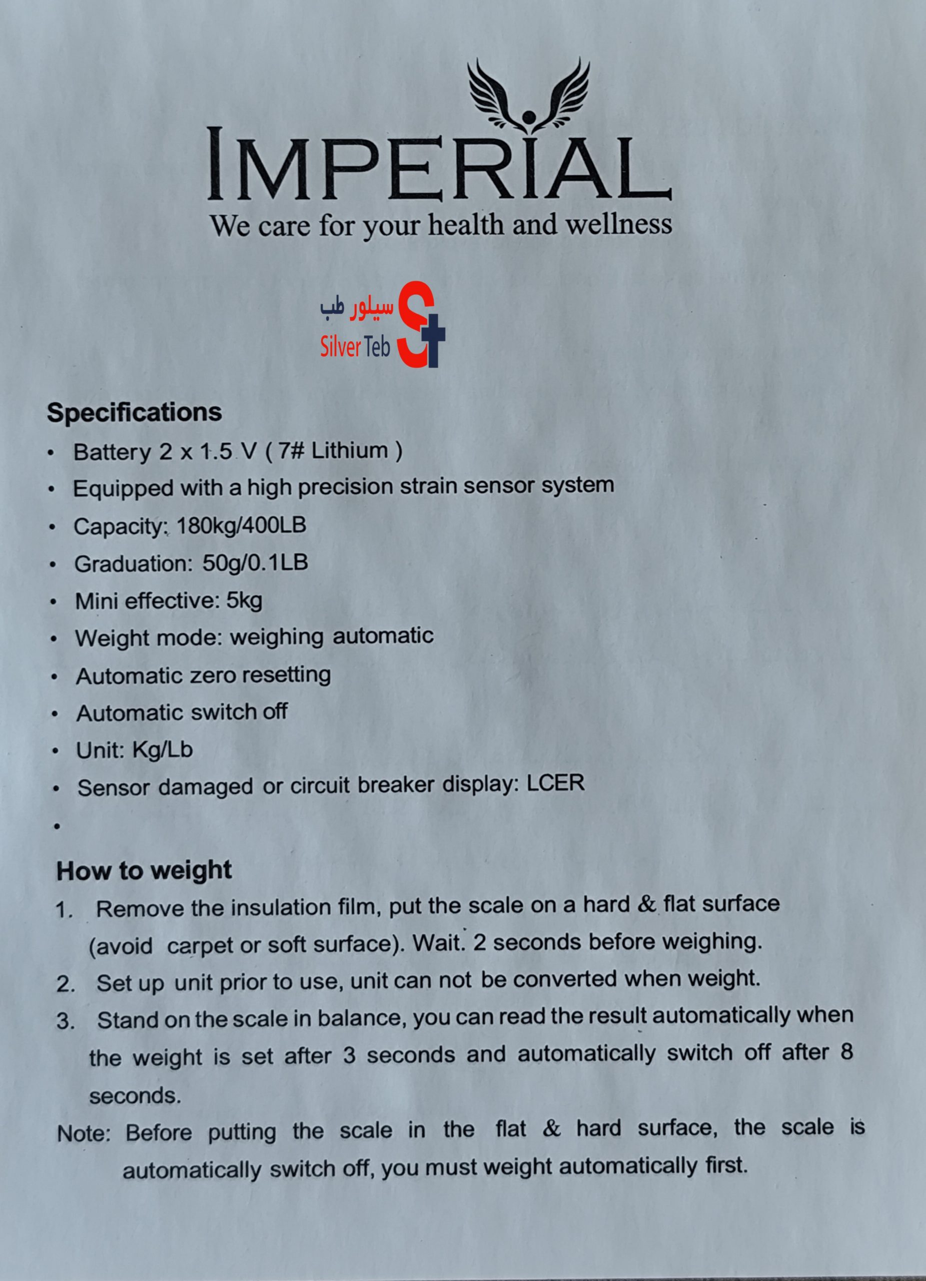 حداکثر وزن اندازه گیری 180 کیلوگرم